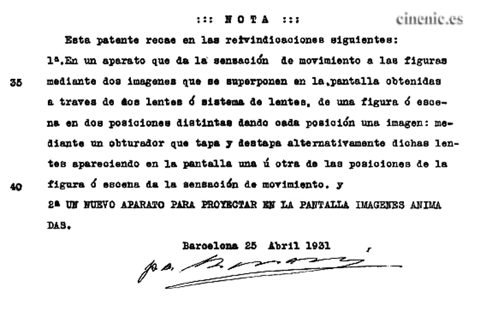 En un alarde de lirismo (y un poco de fantasía), en la patente se dice "una aplicación del mentado aparato es para el examen detallístico de las imágenes del film. Otra aplicación es como jugete, a modo de cine infantil que imita una transmisión por televisión, actuando el espectador con el caracter de tal y como manipulador, aumentando así su interes y entretenimiento"