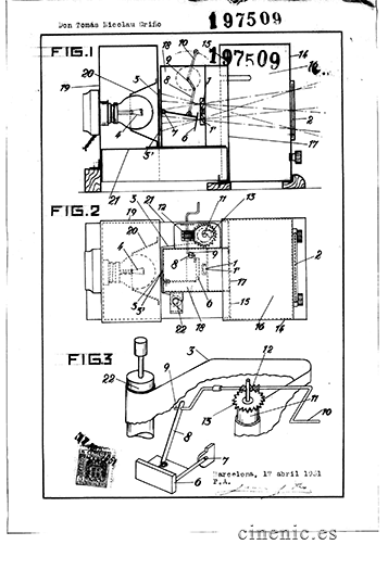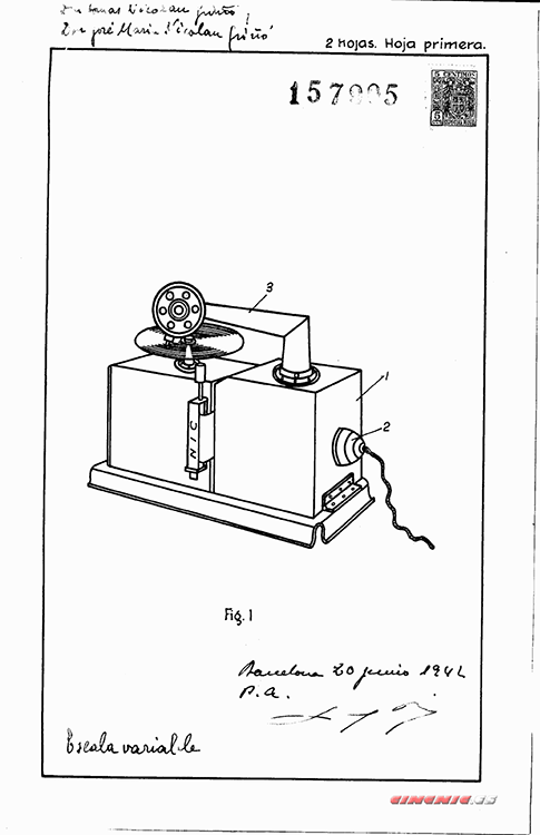 La patente del primer aparato es de 1931 y corresponde al modelo de madera y cartón con películas de papel grandes sobre bastidor metálico.