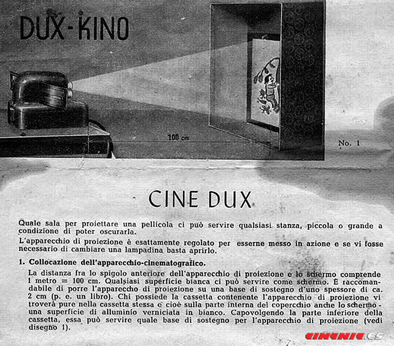 Como curioisidad, en el modelo de mi coleccion, tanto las películas como las instrucciones son del DUX KINO alemán, traducidas al italiano...