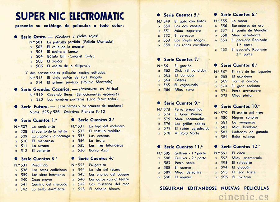 Desde el punto de vista técnico, las películas se fueron adaptando en tamaño a los distintos modelos de cine que se comercializaban, y las hay desde los 5,5cm del NIC pequeño, a los 10cm del SuperNic, que recuperaba el tamaño de las primeras películas sobre bastidor metálico. Las historias se imprimían sobre tiras de papel, que eran traslúcidas -al principio- y más tarde se parafinaban (Alberto Nicolau me comentó que para ello se utilizaba una maquina que servía para engominar el papel de los cigarrillos -LOL-)
